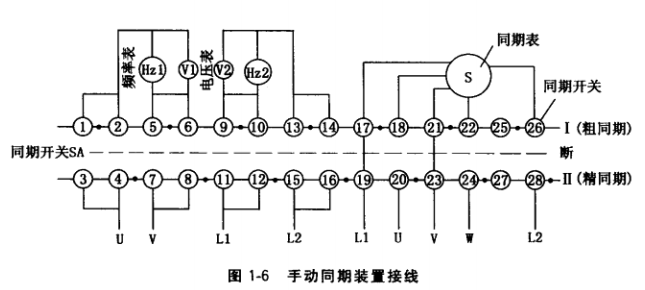 ① 要認真檢査同期裝置各儀表工作是否正常,兩只電壓表和兩只頻率表的準確度應基本 一致,無卡殼現(xiàn)象,以免發(fā)生儀表指示誤差。