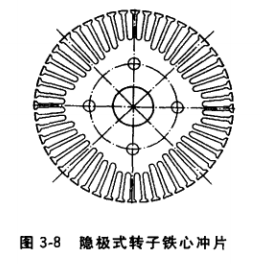 中小型交流發(fā)電機(jī)不論是單 相還是三相,其磁極鐵心都可分為凸極式和隱極式兩種結(jié)構(gòu)。凸 極式指磁極鐵心每極的極身呈凸起狀,磁極繞組就套裝在極身上或直接繞制在絕緣極身上。凸極式磁極鐵心有分體凸極式和鋃 體凸極式之分,它由如圖3-7所示的凸極式磁極鐵心沖片疊裝而成,圖3-7a為分體凸極式磁極鐵心,每個(gè)極鐵心套裝上磁極繞組后,用磁極螺釘固定在磁軛上;圖3-7b為整體凸極式磁極鐵心,每個(gè)極與磁軛部分為一體,磁極繞組直接繞制在已包扎好絕緣物的極身上。國外引進(jìn)技術(shù)生產(chǎn)的發(fā)電機(jī)都采用整體凸極式結(jié)構(gòu),其磁極繞組散熱條件好,機(jī)械強(qiáng)度高,轉(zhuǎn)子無第二氣隙,減少了勵(lì)磁安匝,而且阻尼繞組布置方便,斜極方便,可用斜極結(jié)構(gòu)消除齒諧波。