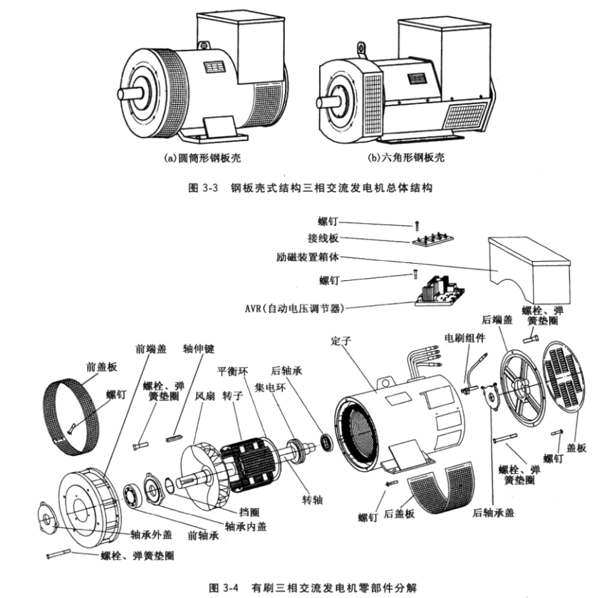 柴油發(fā)電機(jī)組有刷三相交流發(fā)電機(jī)基本結(jié)構(gòu)