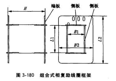 相復(fù)勵線圈框架有兩種結(jié)構(gòu),一種是整體式,由塑料絕緣材料壓制成型;另一種是組合式,由1.5~3mm厚環(huán)氧玻璃布板沖切成設(shè)計規(guī)定的3種形狀和尺寸的框架板組裝而成,如 圖3-180所示。前者成型性、外觀好,框架壁較厚(一般3~5mm),否則繞制線圈時框架端板容易斷裂。后者外觀稍不如前者,但壁較薄,且韌性好,端板不會斷裂,因而使用較多。