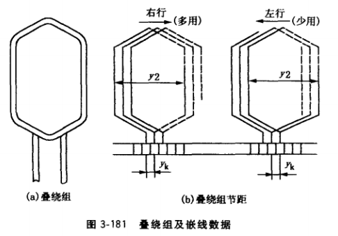 對單疊繞組:yk = ±l,對雙疊繞組yk = ±2。yk取正值時繞向為右行不交叉,如圖 3-181b所示,一般都采用這種繞法。yk取負值時繞向為左行交叉,這種繞法極少采用。