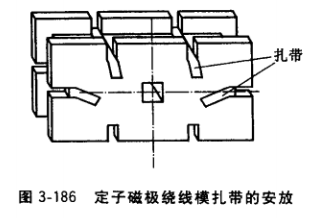 繞線一般手動(dòng)或使用自動(dòng)繞線機(jī),注意 每次起繞前必須將計(jì)數(shù)器回零。當(dāng)繞線模安裝到繞線機(jī)上后,在其開(kāi)口槽中放置繞組扎帶,如圖3-186所示。繞線模寬度上一般只放一根扎帶,長(zhǎng)度方向上放置的扎帶根數(shù)則和模長(zhǎng)有關(guān),模長(zhǎng)80mm以下放1根,模長(zhǎng)80?200mm放2根,模長(zhǎng)200mm以上放3根。繞組繞到一定層數(shù)吋,將各邊上的扎帶回折一次,然后繼續(xù)繞制,繞過(guò)20匝左右停機(jī)并拉緊各邊扎帶一次。繞到最后一層時(shí),把扎帶彎成扣形,壓住最后的那根導(dǎo)線。