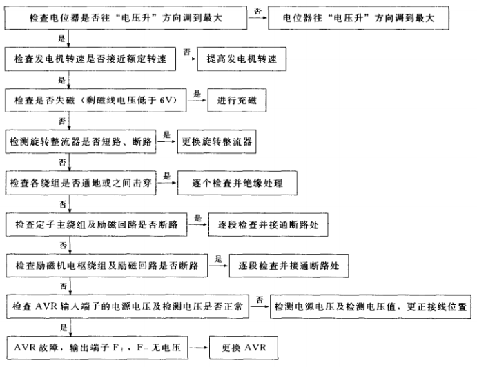 1.有刷單相交流發(fā)電機(jī)(含可控勵磁)不能發(fā)電故障排除步驟
