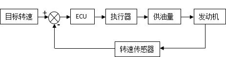 如圖3,操作人員根據(jù)工作意圖,設(shè)定相應(yīng)的開關(guān)及電位器狀態(tài),從而設(shè)定電調(diào)ECU當(dāng)前需要讓系統(tǒng)工作的目標(biāo)轉(zhuǎn)速。ECU通過轉(zhuǎn)速傳感器獲取轉(zhuǎn)速并與當(dāng)前目標(biāo)轉(zhuǎn)速值比較,并與當(dāng)前執(zhí)行器允許的最大允許位置比較,從而確定執(zhí)行器此時應(yīng)該所在的位置并驅(qū)動其到達(dá)。執(zhí)行器位置對應(yīng)的是油泵的供油量,其變化直接影響的是油泵的供油量,而供油量的變化將決定發(fā)動機(jī)轉(zhuǎn)速狀態(tài),當(dāng)前這一轉(zhuǎn)速又通過轉(zhuǎn)速傳感器反饋給ECU做及時控制的判斷依據(jù)。