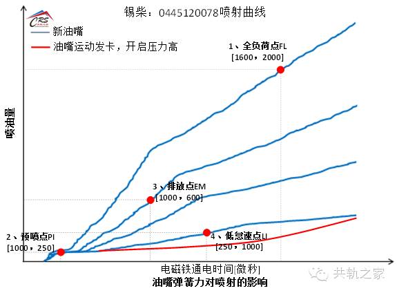 待共軌之家一一與大家分享。共軌之家獨(dú)家原創(chuàng),版權(quán)所有,轉(zhuǎn)載請(qǐng)注明出處!1明明噴油器各個(gè)測試點(diǎn)都符合規(guī)范,為什么裝上去就是敲缸?對(duì)于噴油器維修過程中墊片調(diào)整的方法,共軌之家早在去年夏天就與大家詳細(xì)分享過,多數(shù)泵友掌握了基本方向。但是,大家都忽視了某些細(xì)節(jié),比如對(duì)墊片調(diào)整幅度的限制,共軌之家給出了建議值。很多泵友都問過:更換閥組件,通過加厚針閥升程墊片厚度的方法,噴油器所有的噴射點(diǎn)油量都符合規(guī)范,但是為什么裝上去就是敲缸呢?相信大家都還記得如下所示的噴油器噴射曲線圖。