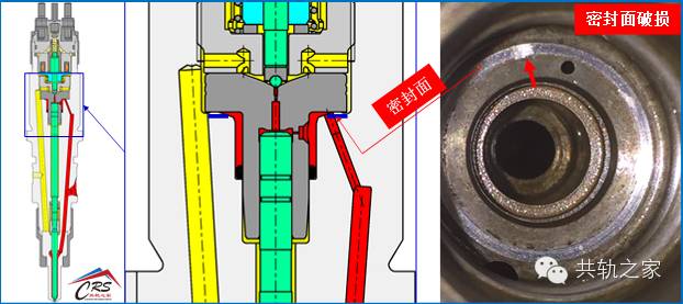小軌提醒注:由于全負(fù)荷點(diǎn)和排放點(diǎn)的噴射量相對(duì)較大,而低怠速點(diǎn)的軌壓很低,因此它們的油量受油嘴座面泄漏的影響不明顯。哪些情況會(huì)導(dǎo)致油嘴座面泄漏呢?可能原因有:1油嘴密封座面損傷;2針閥頭部密封面破損(如碳涂層脫落);3油嘴座面卡有顆粒;4極端情況下,油嘴球頭會(huì)開裂出現(xiàn)裂紋。